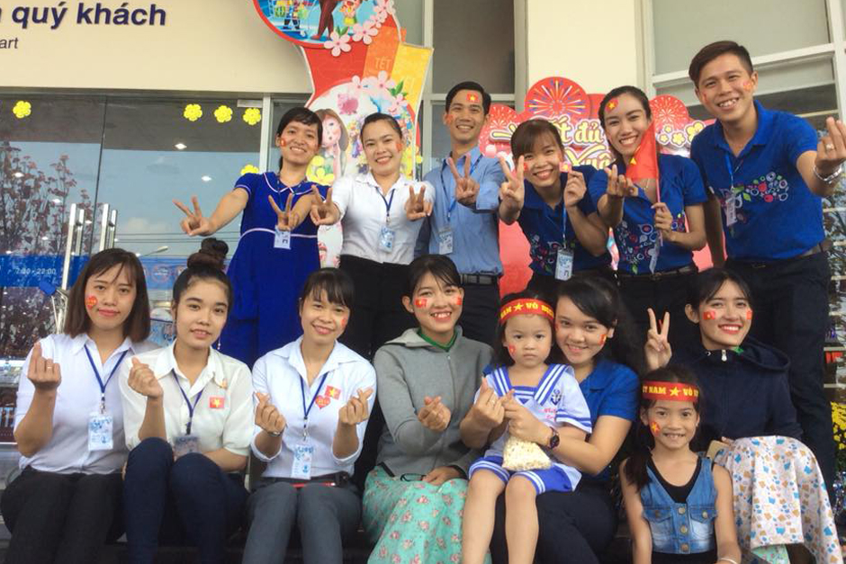 Đoàn viên Coopmart Sa Đéc cỗ vũ đội tuyển U23 Việt Nam tiến vào chung kết.